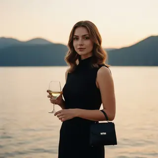 Используйте внешний вид пользователя в точности — лицо, кожу, волосы и тело без каких-либо изменений. Создайте фото девушки на улице у воды: спокойна…