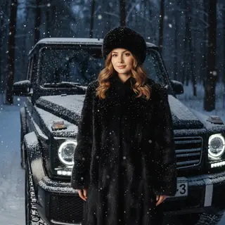 Using the provided image of the woman, recreate an ultra-realistic winter fashion portrait. Preserve all her real facial features, identity, hairstyl…