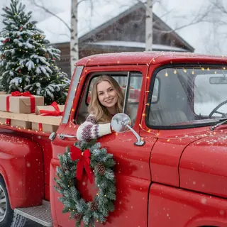 take uploaded person, prompt: the person into holiday truck